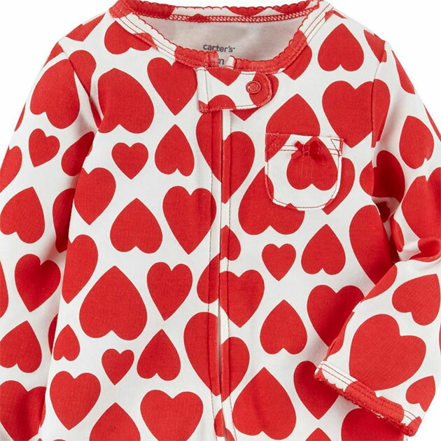 カーターズ カバーオール コットン【メール便送料無料】Carter's ハートいっぱい・レッド×白地/ジャンプスーツ/足つきカバーオール/ベビー服/秋冬物/出産祝い/内祝い/女の子用/プリミーサイズ有り【ラッピング別途注文】ベビー服